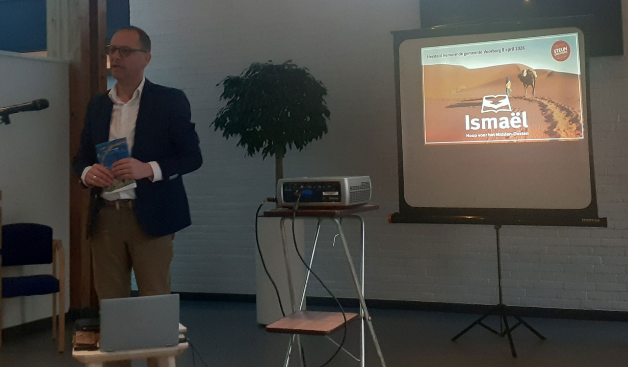 Vervolgens houdt Adri Weststrate een lezing over het werk van de stichting. Hij vertelt over het ontstaan hiervan. Dit begon (indirect) met een Christelijke boekhandel in de Palestijnse gebieden. Die boekhandel bevond zich tegenover het kantoor van de PLO. Toen kon dat nog. Hij ging verder en las een brief voor uit Libanon over de bommen die in Beiroet vallen. Dit tekent de onrust vandaag de dag in die regio. Al is er sinds vandaag een wapenstilstand tussen Amerika en Iran. Stichting Ismaël werkt in de Arabische landen in het Midden-Oosten. Iran hoort daar niet bij, dat is een Perzisch volk met een andere taal. Toch heeft de oorlog daar veel gevolgen voor de Arabische regio. Regelmatig stelt Weststrate een vraag tussendoor en betrekt zo nog meer de bezoekers, niet in de laatste plaats de jongeren.